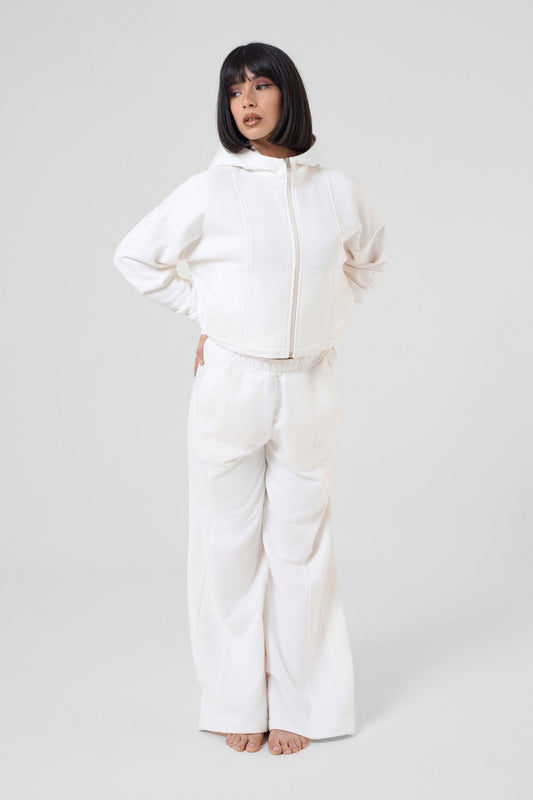 Set Ludika White Felpa Crop e Panta Wide-Leg