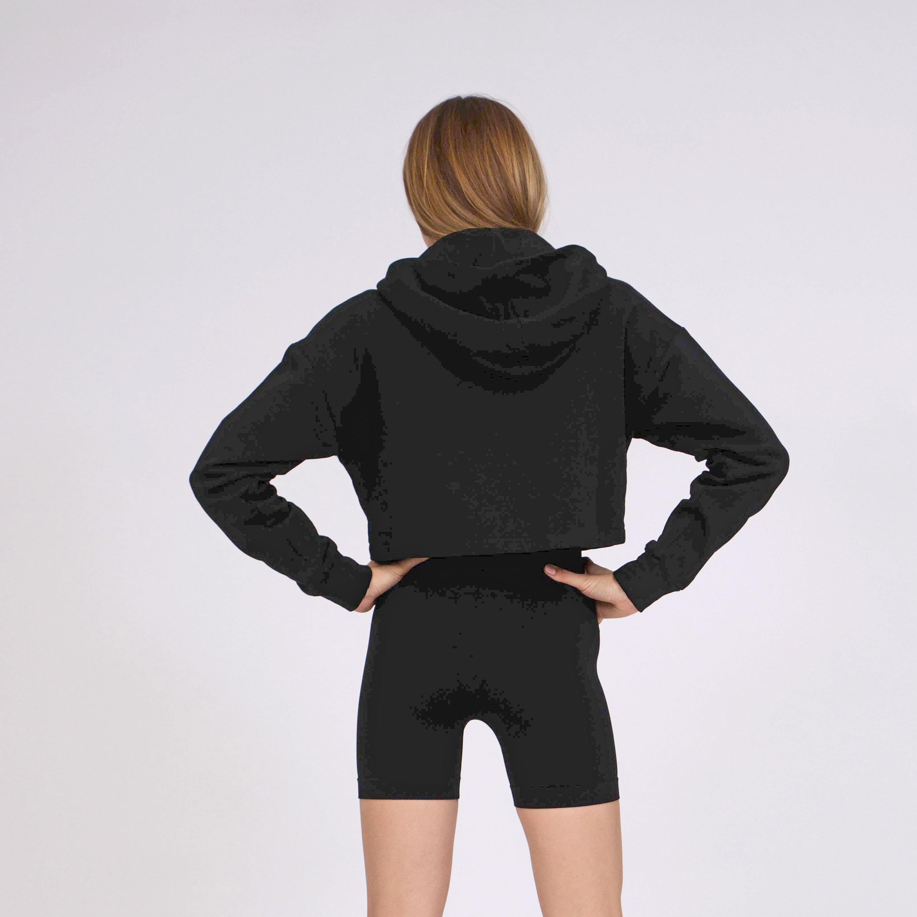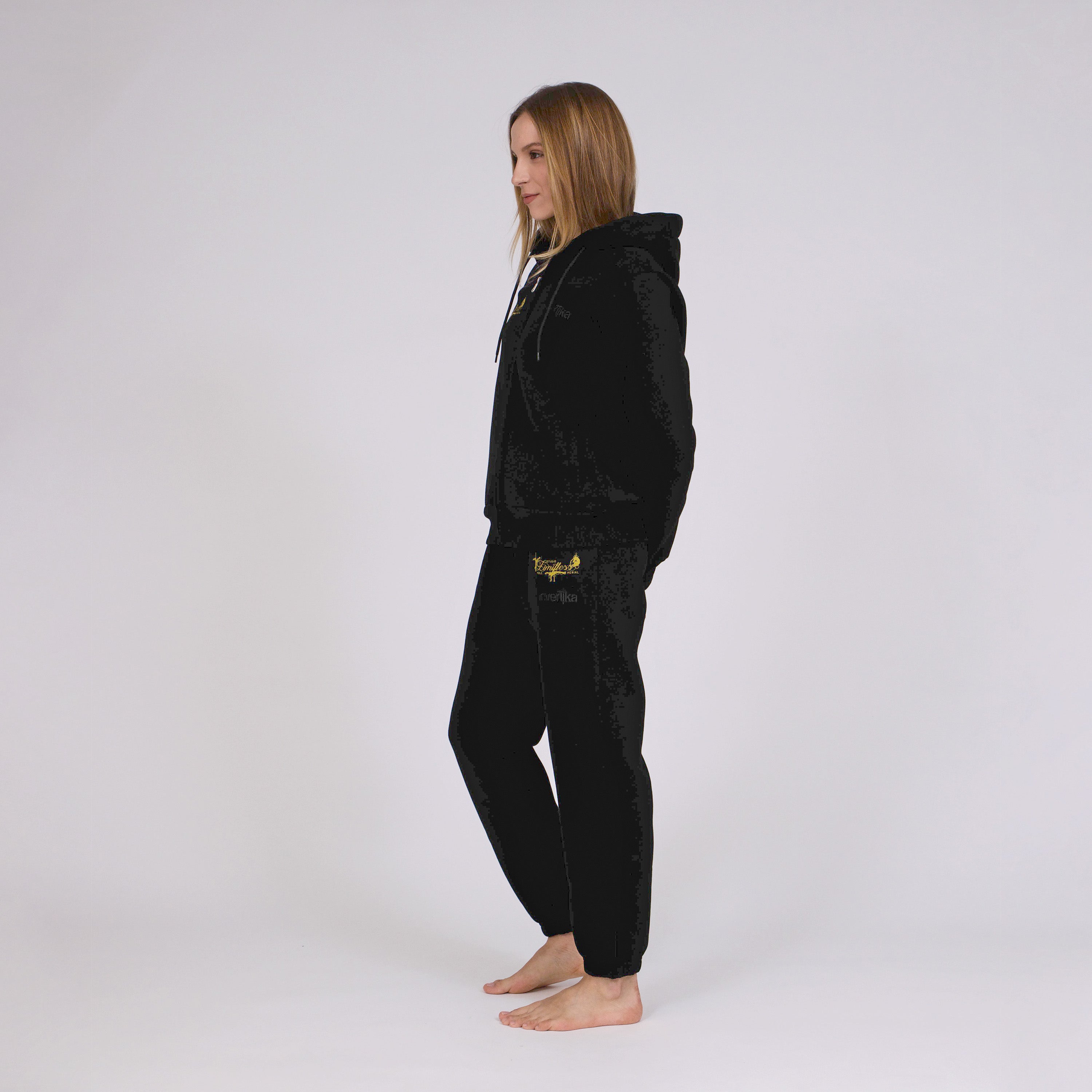 Modello: FELPA CROP CON CAPPUCCIO E TASCHE LATERALI | PANTALONE REGULAR CON ELASTICO IN VITA E ALLE CAVIGLIE