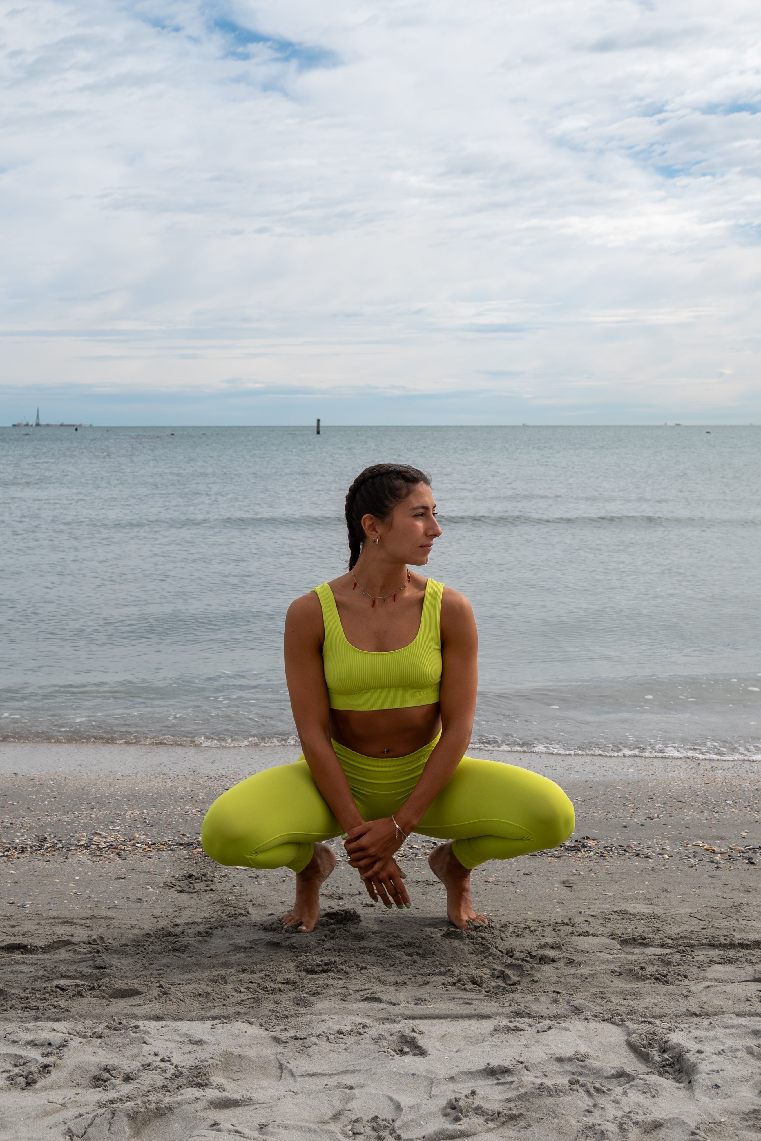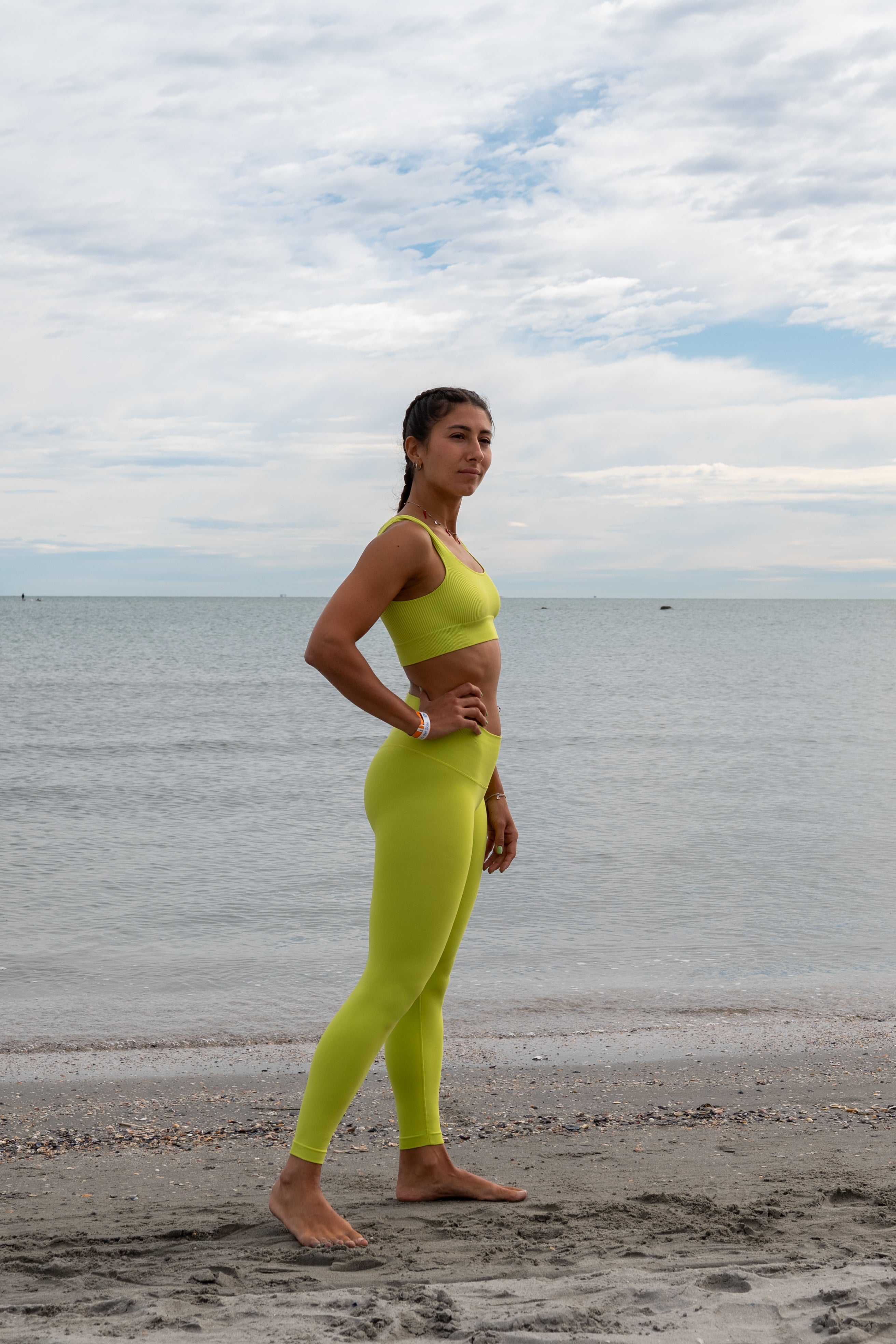 Il Set Tonika Lime Crop Top e Leggings di Invertika è realizzato in microfibra senza cuciture Made in Italy.