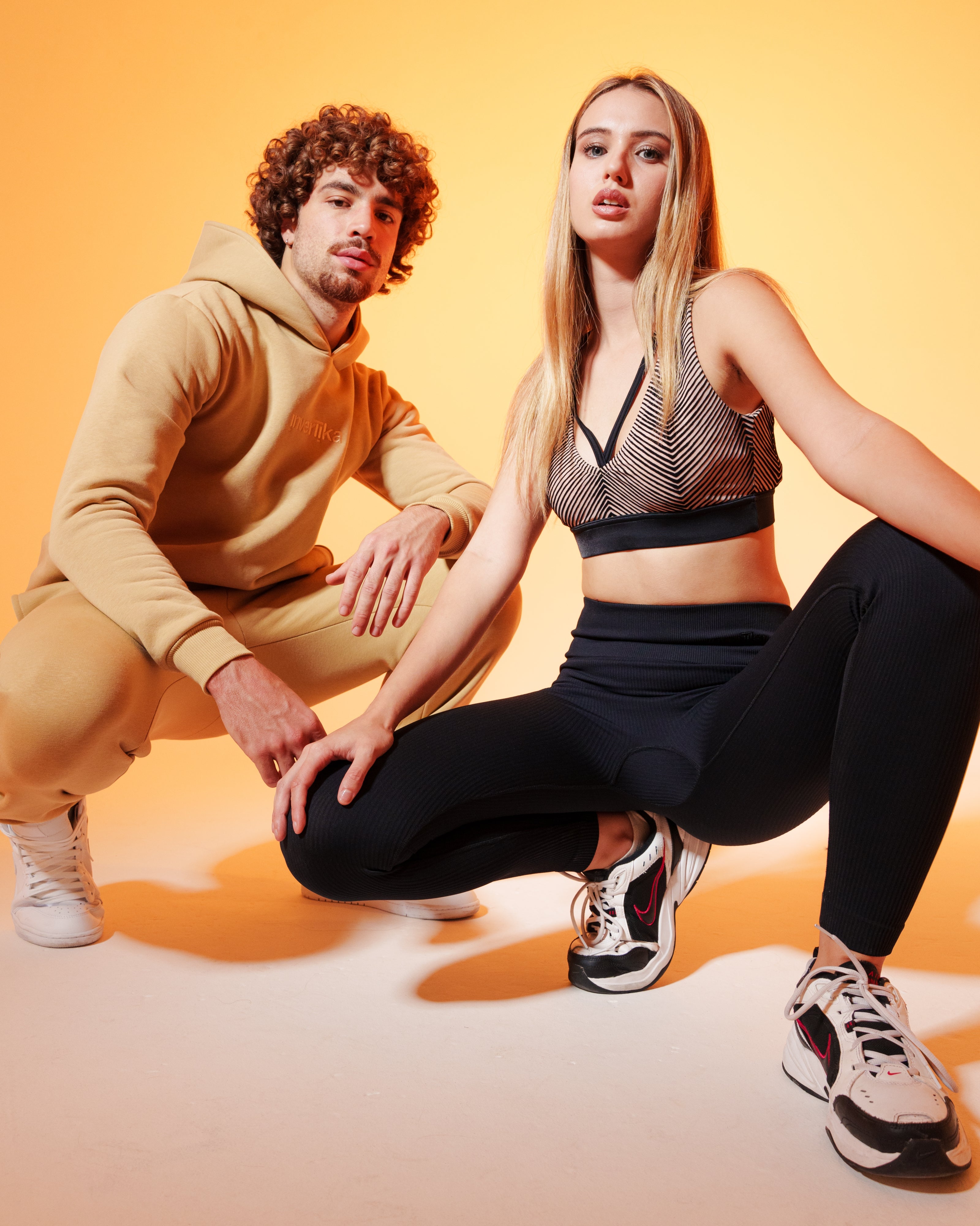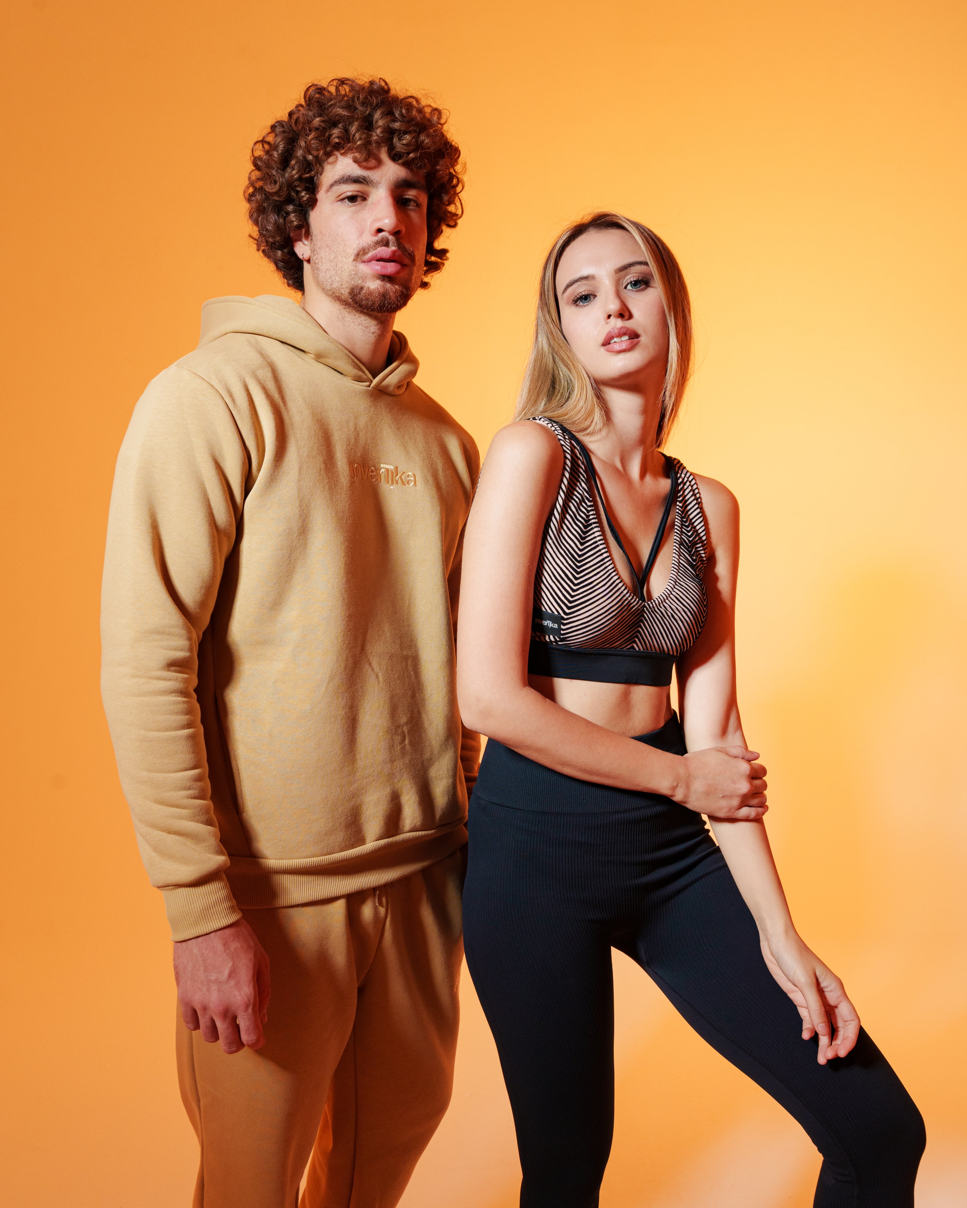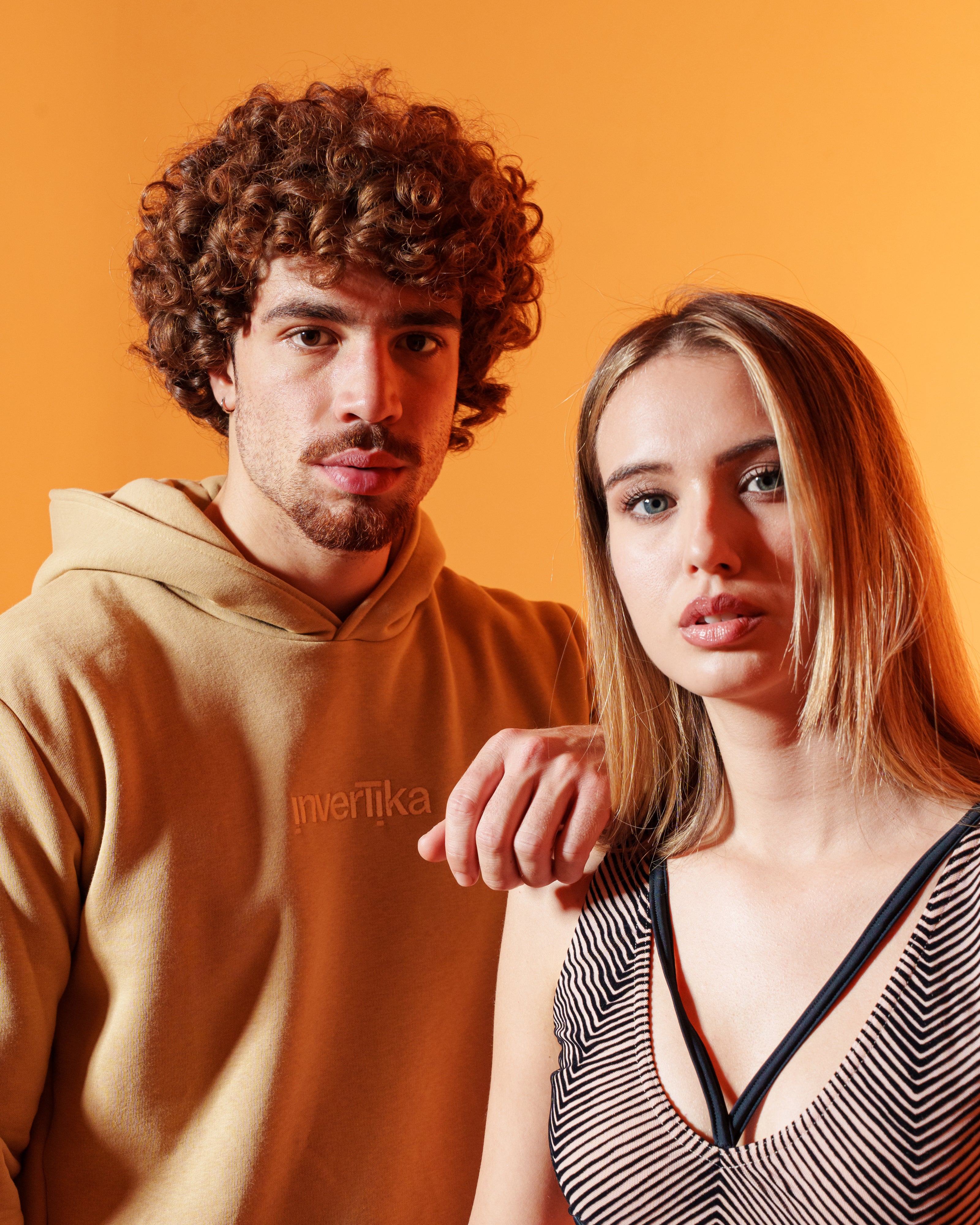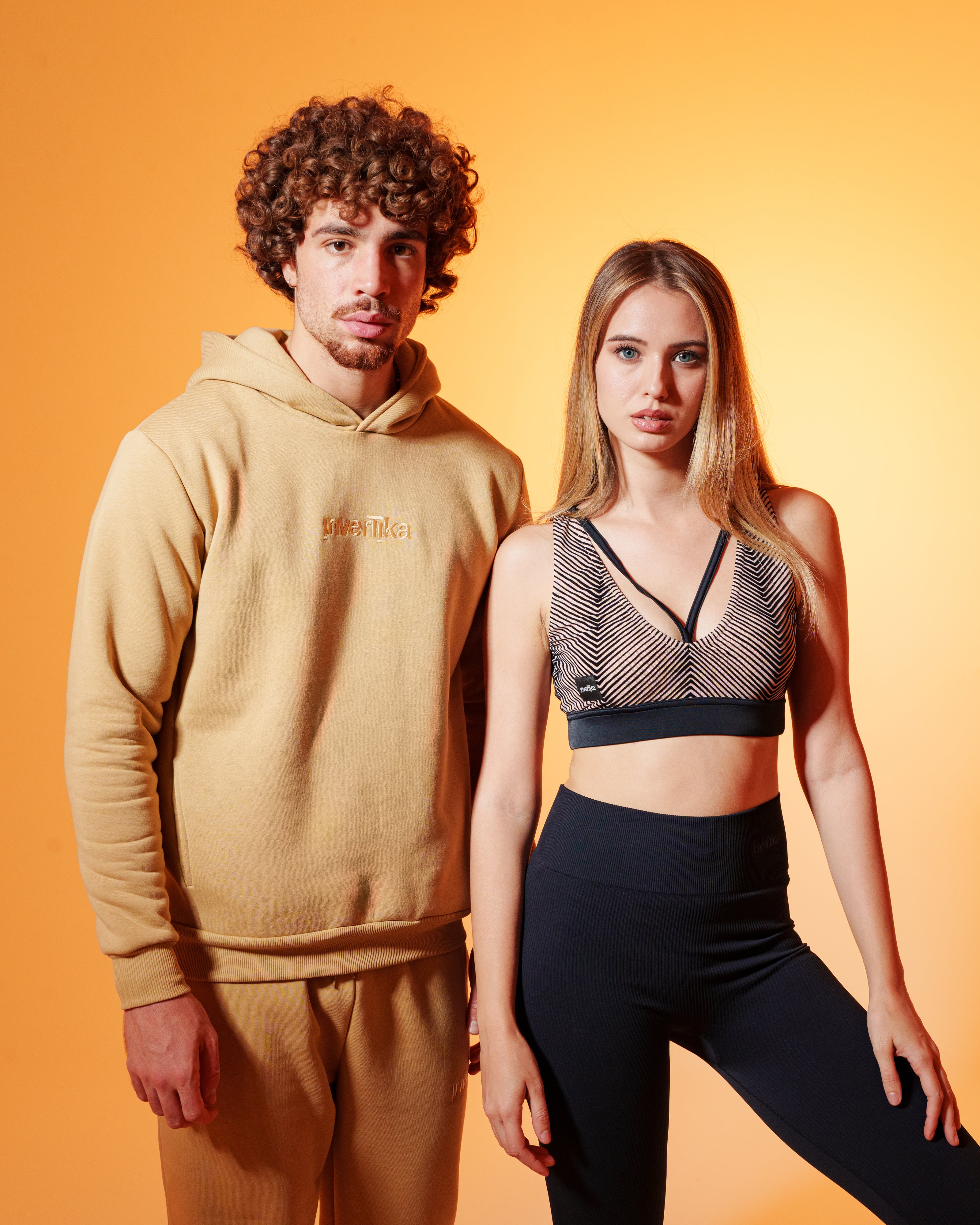Il Set, felpa e pantalone unisex della collezione Cosmika di Invertika nella variante cammello sono il mix perfetto di stile, comfort e qualità Made in Italy.