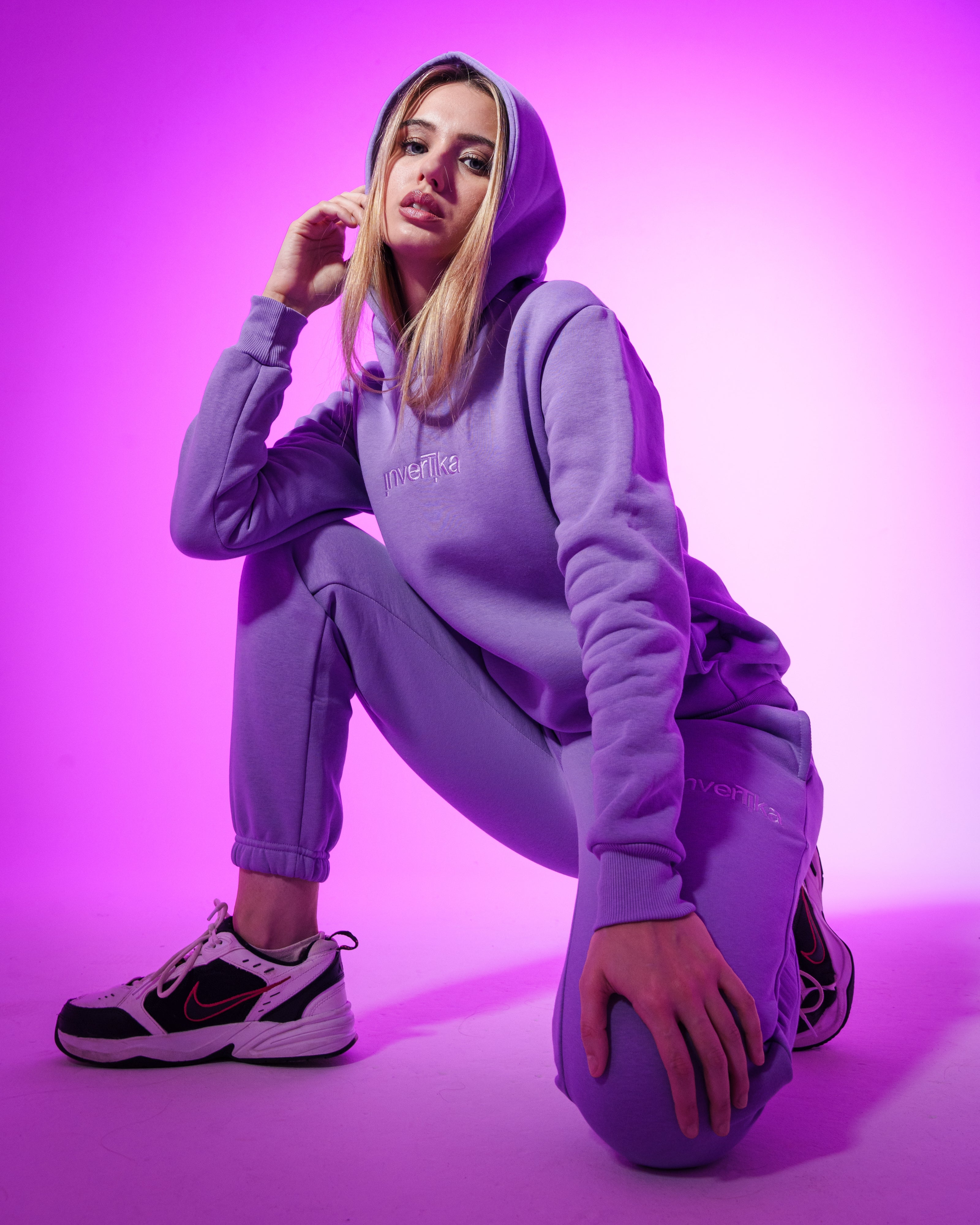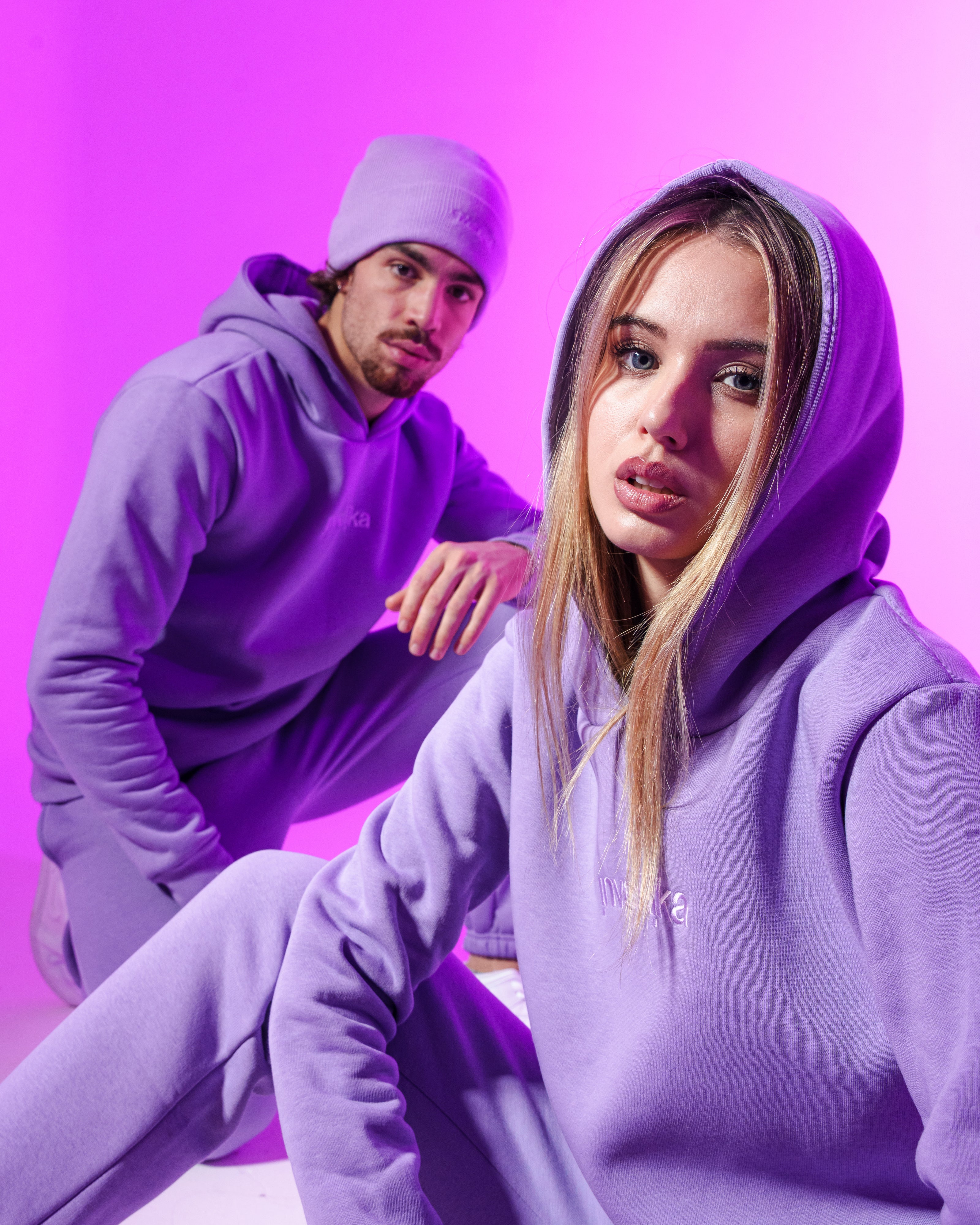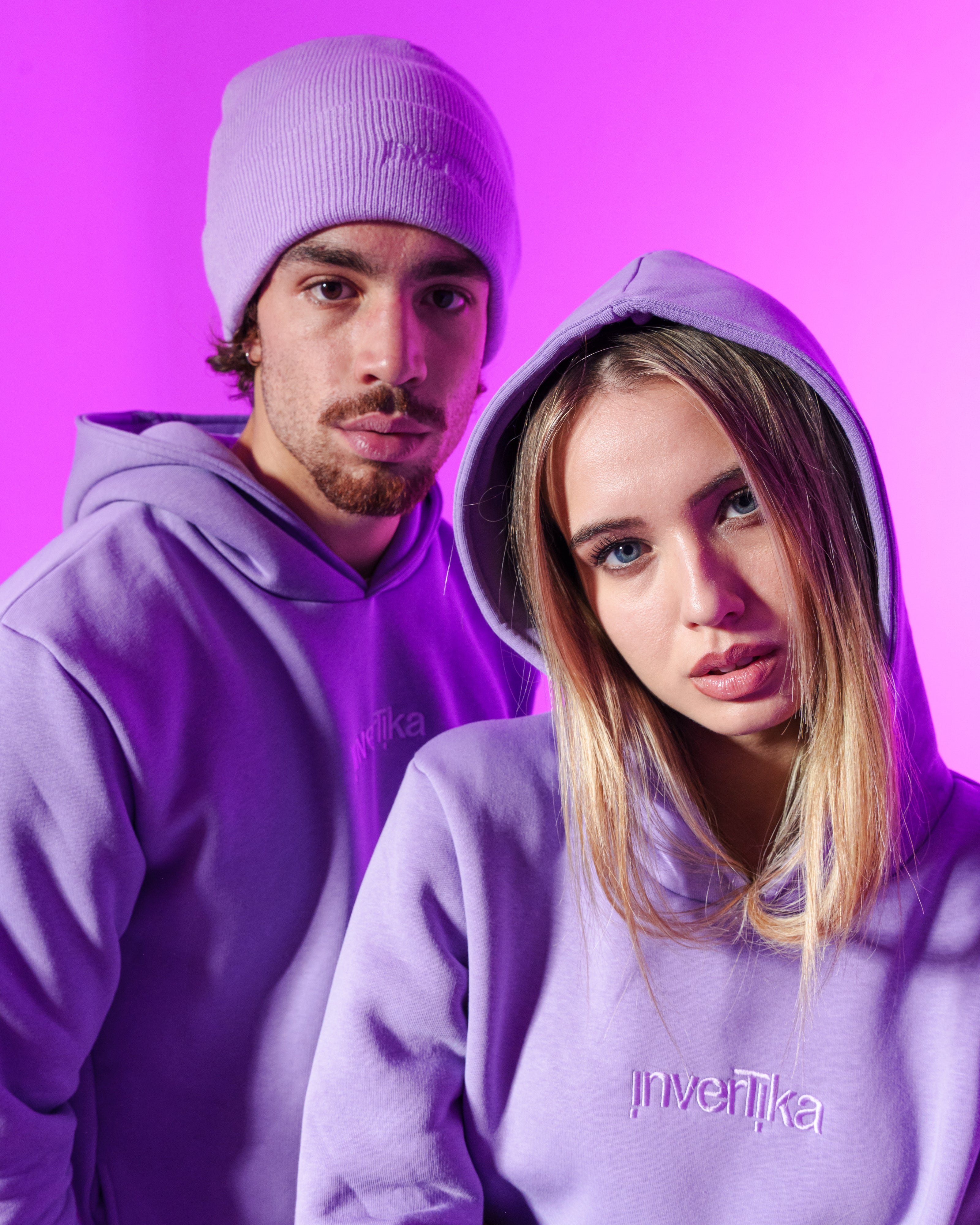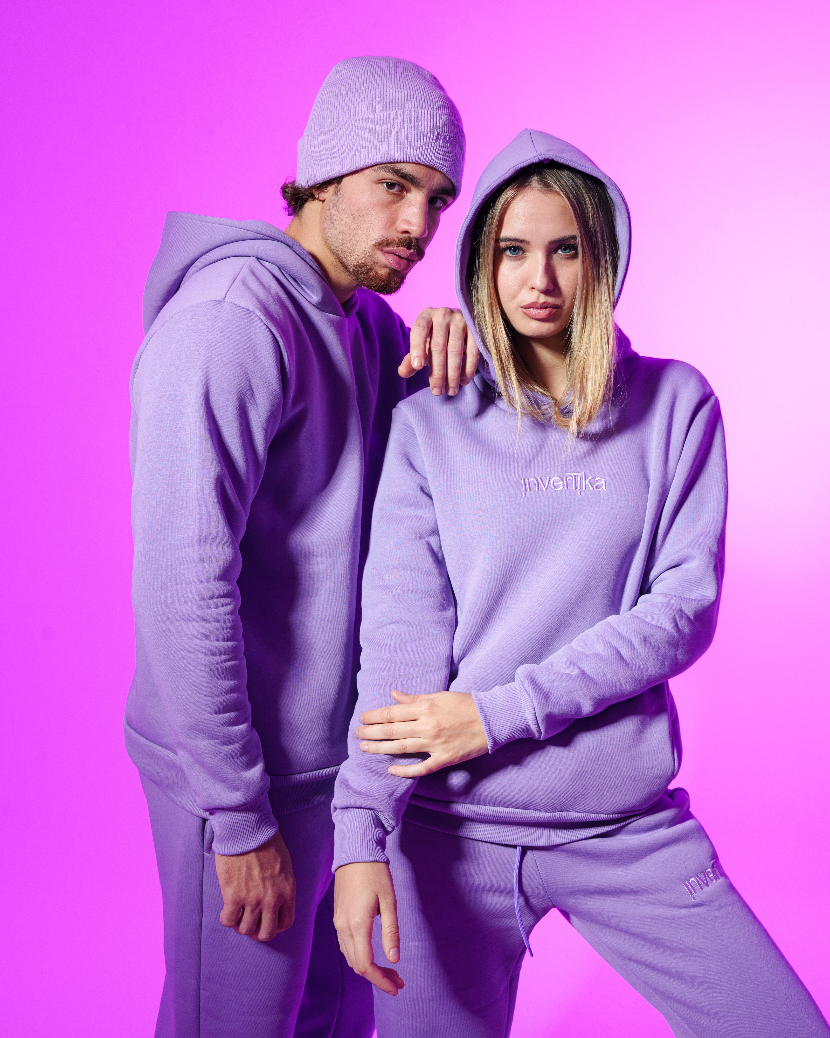Il Set, felpa e pantalone unisex della collezione Cosmika di Invertika nella variante lilla sono il mix perfetto di stile, comfort e qualità Made in Italy.