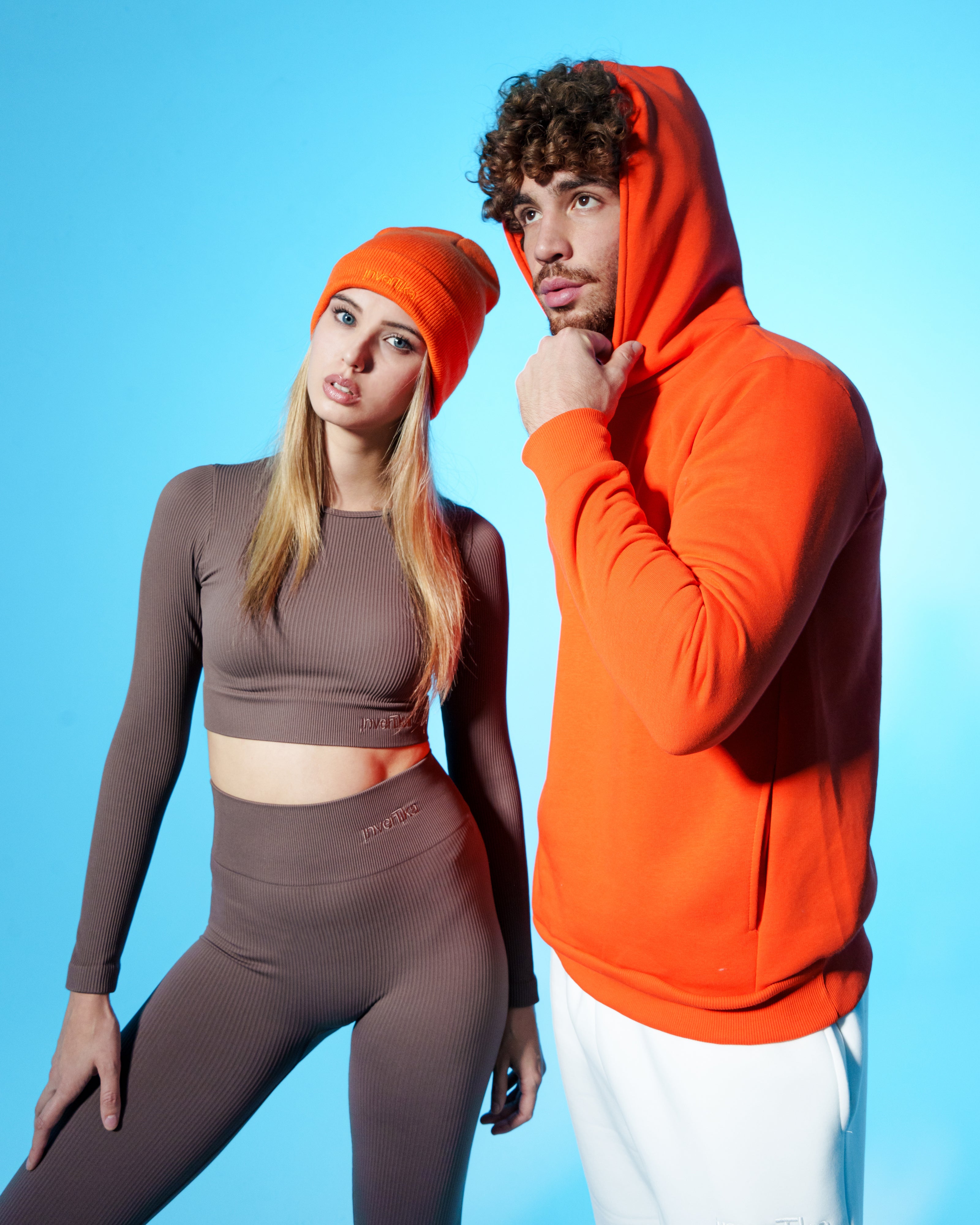 Il Set Top e Leggings Choco della collezione Tonika di Invertika è realizzato in microfibra senza cuciture Made in Italy.